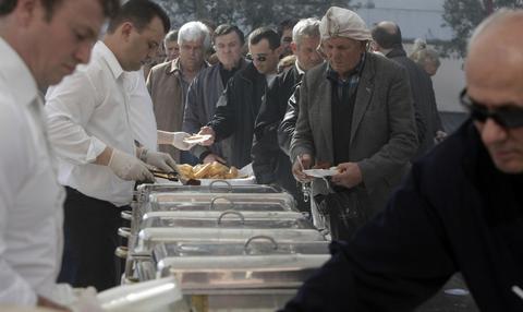 Σε συσσίτιο μετατράπηκε η Τσικνοπέμπτη στην κεντρική αγορά της Αθήνας, αφού πλήθος κόσμου έσπευσε στη Βαρβάκειο Αγορά μόλις οι ψησταριές πήραν φωτιά.